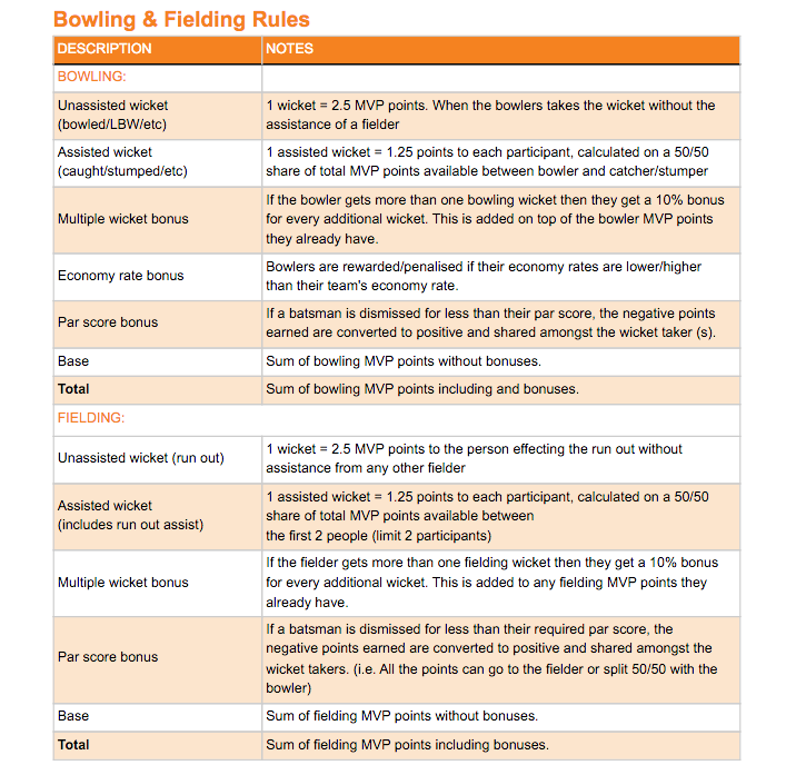 1 wicket = 2.5 MVP points & 10 runs = 1 MVP point